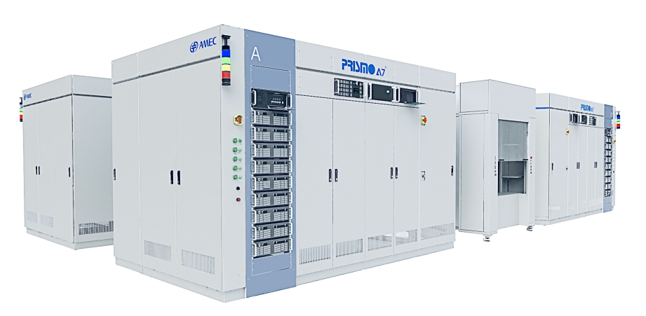 中微具有自主知識產權的MOCVD設備PRISMO A7?可配置多達4個反應腔,可以同時加工136片4英寸晶片或56片6英寸晶片,工藝能力還能延展到生長8英寸外延晶片。每個反應腔都可以獨立控制,這一設計可以實現(xiàn)優(yōu)異的生產靈活性。 配備了 716 毫米托盤的中微 PRISMO A7? MOCVD 設備專為 LED 高產能而設計,每個反應腔的產量是前一代MOCVD 設備 PRISMO D- BLUE? 的 2 倍多,極大地提高了單位產能,能有效降低 LED 外延片的生產成本。